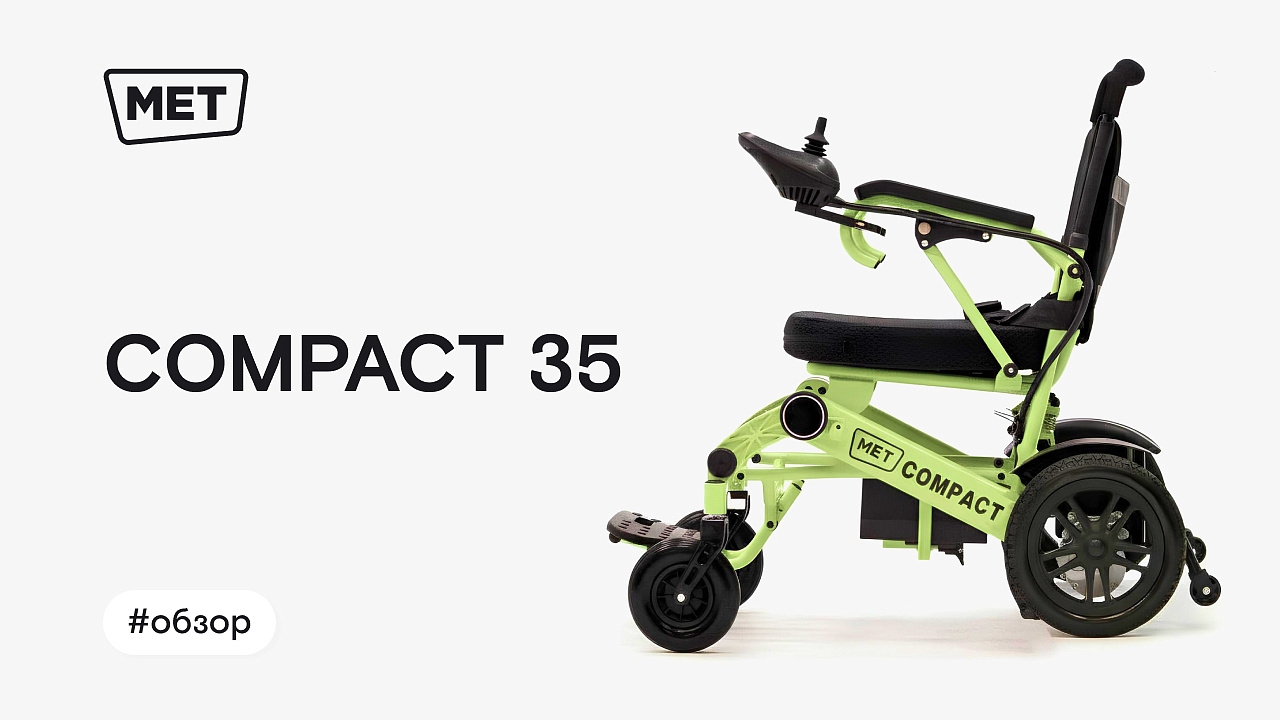 Кресло-коляска оборудовано двумя двигателями мощностью 250 Вт. Наибольшая скорость, которую развивает MET COMPACT 35, составляет 6 километров в час, а дистанция, преодолеваемая коляской на одном заряде, достигает 20 километров. Однако дальность хода на одном заряде может варьироваться в зависимости от скорости движения, веса пользователя, качества дороги и манеры вождения.