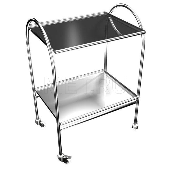 - Столик оборудован стальными дугами и поворотными колёсиками с возможностью фиксации положения.