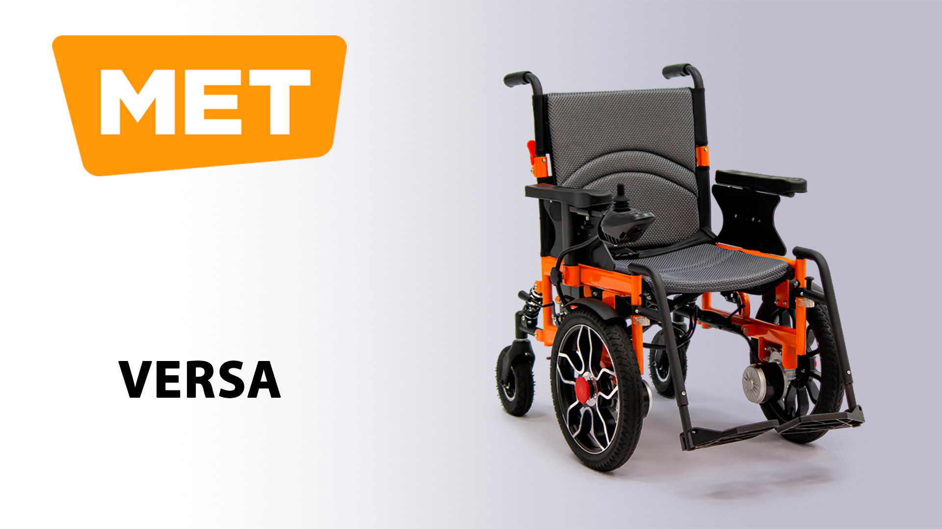 Кресло-коляска оборудована двигателем мощностью 250 Вт. Наибольшая скорость, которую способна развить модель, составляет 6 километров в час. Дальность хода на одной зарядке может достигать 20 километров. Однако расстояние, которое MET VERSA может преодолеть на одном заряде, может изменяться в зависимости от скорости движения, веса пользователя, качества дорожного покрытия и манеры вождения.