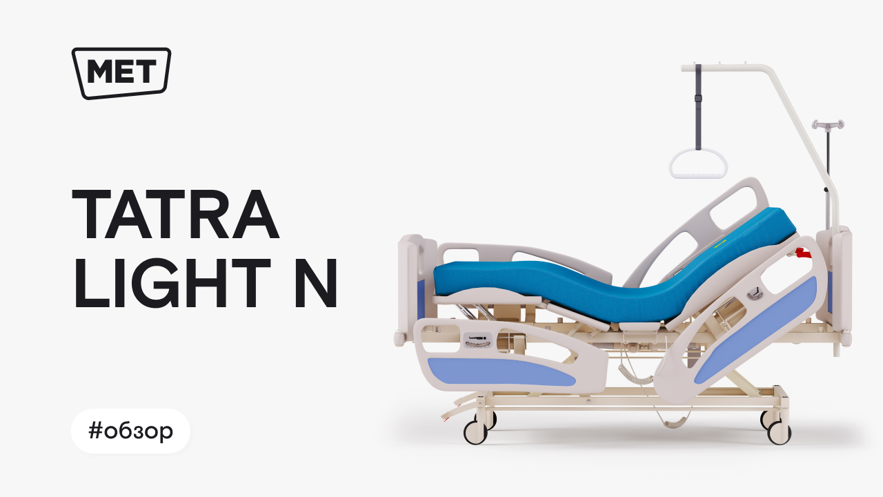 Электроприводная четырёхсекционная кровать MET TATRA LIGHT N российского производства предназначена для оснащения палат интенсивной терапии и общего профиля. Наличие у кровати рентгенопрозрачного ложа значительно облегчает работу медиков, позволяя проводить диагностические исследования без транспортировки больного.