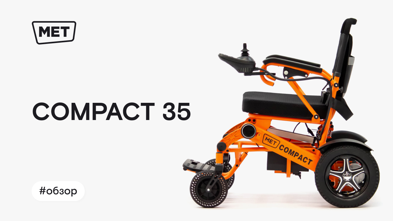 Кресло-коляска оборудовано двумя двигателями мощностью 250 Вт. Наибольшая скорость, которую развивает MET COMPACT 35, составляет 6 километров в час, а дистанция, преодолеваемая коляской на одном заряде, достигает 20 километров. Однако дальность хода на одном заряде может варьироваться в зависимости от скорости движения, веса пользователя, качества дороги и манеры вождения.